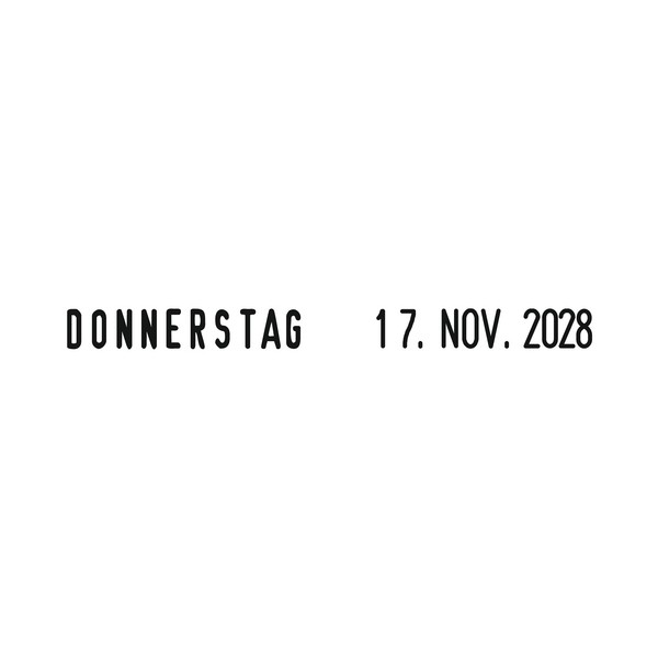 Trodat Datumstempel Printy 4817/B, Wortbandstempel mit Wochentagen und Datum. Schrifthöhe Datum 3,8 mm. Monate gekürzt, Jahr 4-stellig. Selbstfärbender Datumstempel hergestellt aus mind. 70% Recycling-Kunststoff